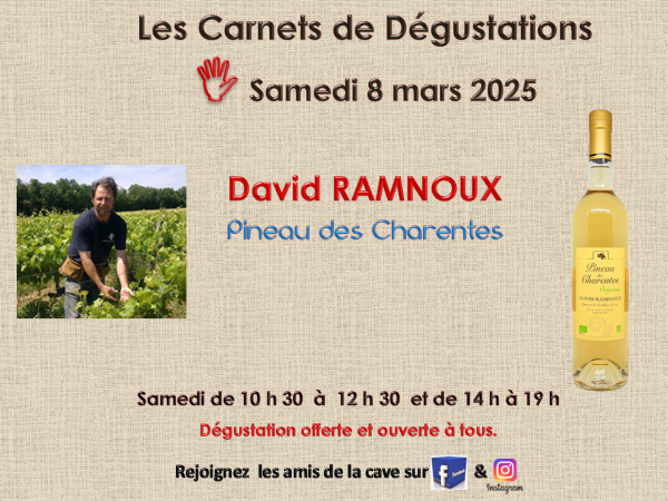 SAMEDI 8 MARS : HOMMAGE AU PINEAU DES CHARENTES : DAVID RAMNOUX A LA CAVE . . .
