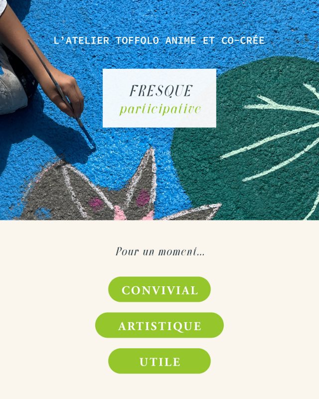 L’atelier Toffolo vous accompagne dans les projets artistiques et réalisation de fresques pour embellir vos espaces. L’atelier propose des décors muraux seul ou sous forme d’atelier participatifs auprès de votre public.