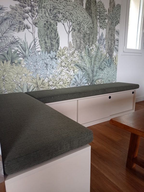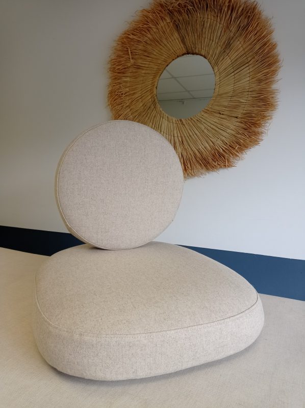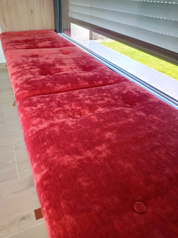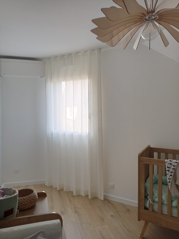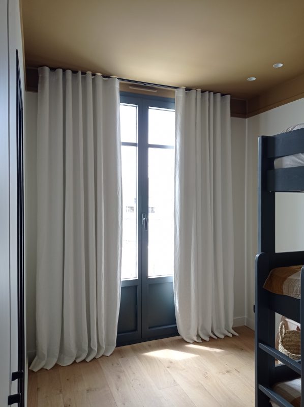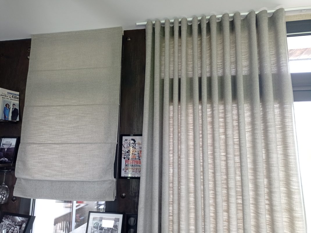 Confection sur mesure des décors de rideaux, voilages, stores bateaux, réalisations des coussins en forme, d’une tête de lit, des banquettes et réfection des fauteuils avec ou sans coussins.
