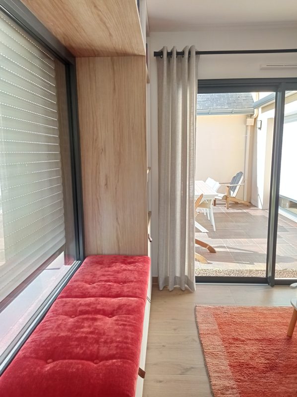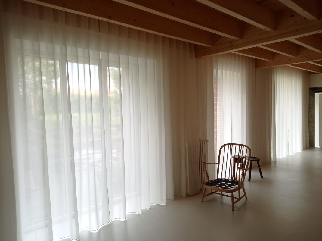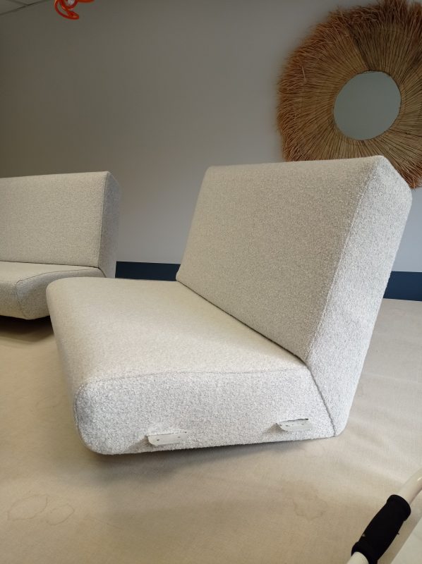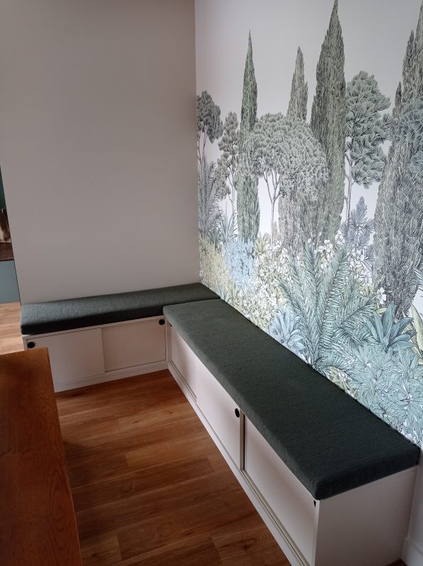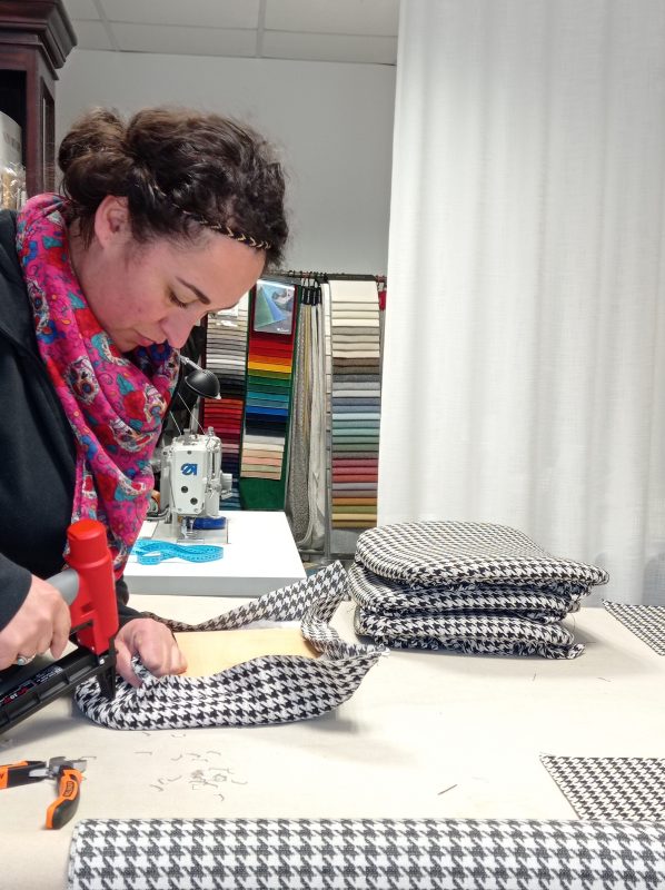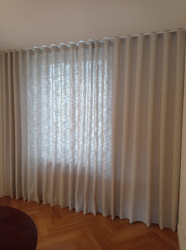 Confection sur mesure des décors de rideaux, voilages, stores bateaux, réalisations des coussins en forme, d’une tête de lit, des banquettes et réfection des fauteuils avec ou sans coussins.