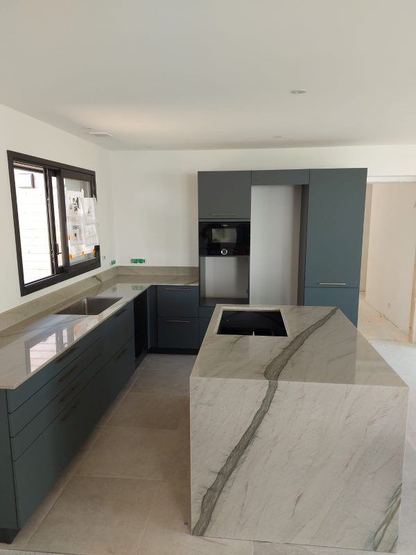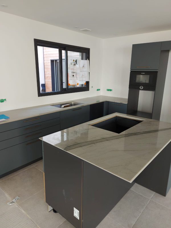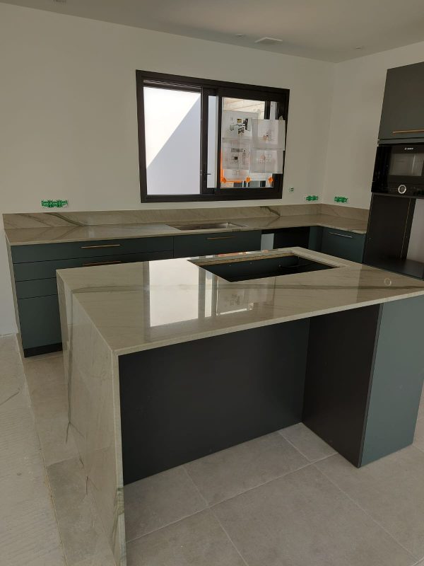 Nous sommes ravis de vous présenter notre dernière création : un superbe plan de travail en Quartzite Méridien. Ce projet a été réalisé en étroite collaboration avec Home Mesure, garantissant une précision et une qualité inégalées.