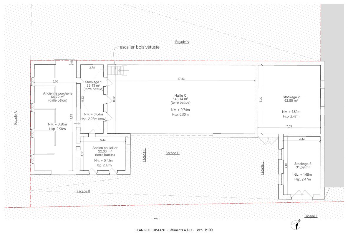 Les bâtiments A à E présentent des murs en pierre droits et visuellement sains. Leurs joints