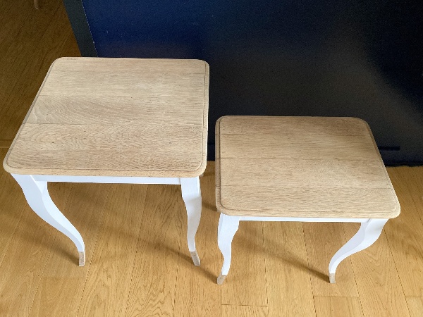 Voila une paire de tables gigognes qui a retrouvé une nouvelle jeunesse grâce à un relooking tendance.