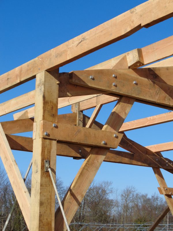 - Charpente traditionnelle : réalisation et rénovation de charpentes avec chevrons porteurs, fermettes, levage de charpente, modification et renforts structurels.
