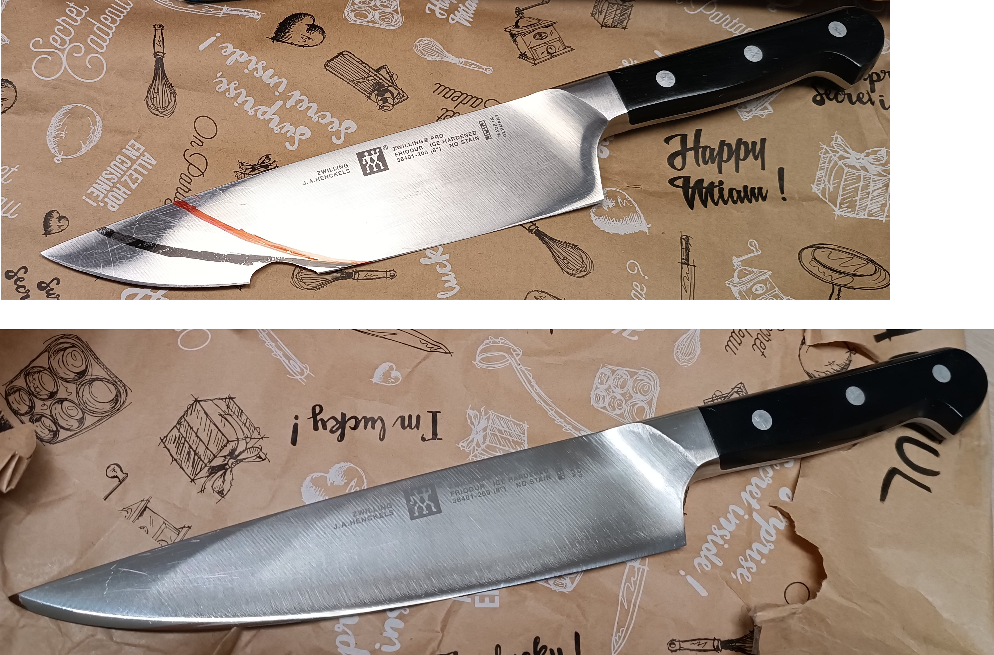 Très belle récupération et nouvelle vie pour un couteau zwilling 38401-200 malheureusement ébréché