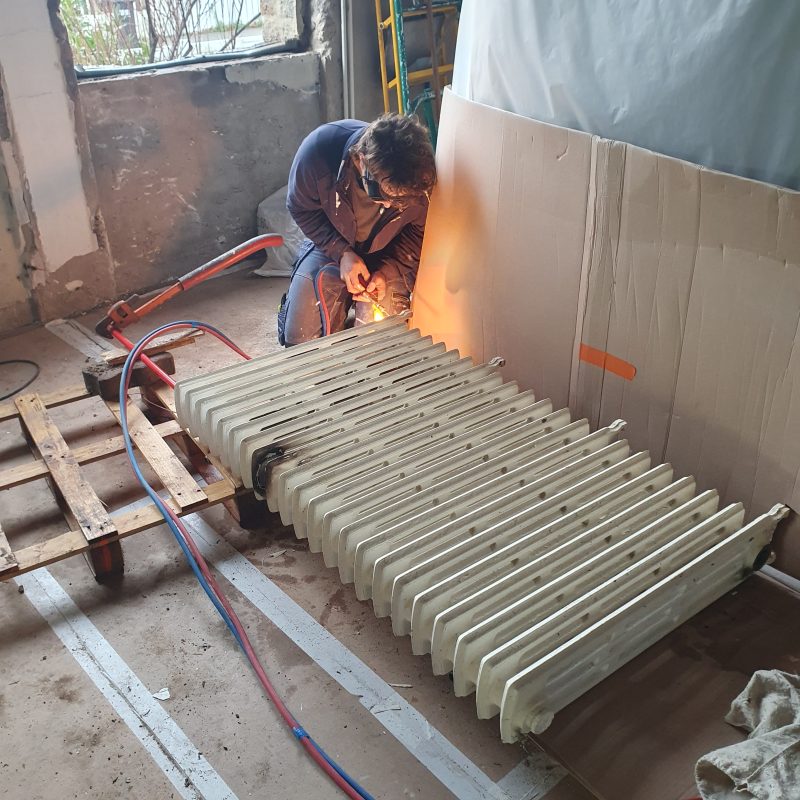 Pose d’éléments sanitaires et de chauffage : radiateurs, robinetterie, douches