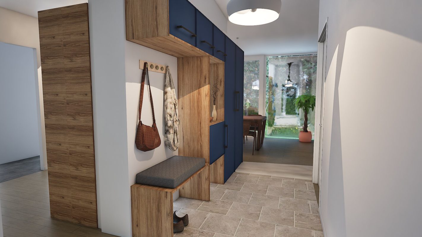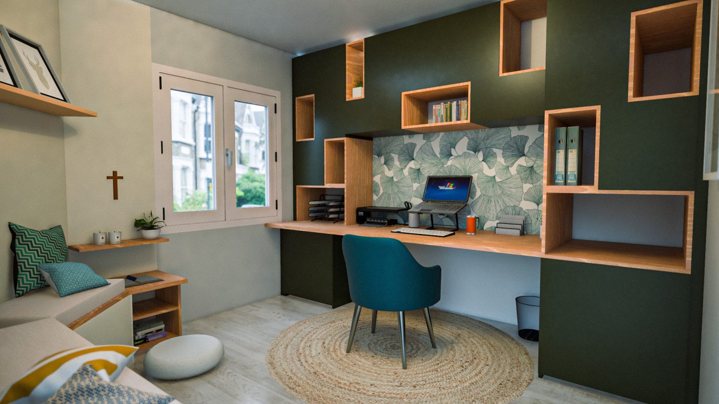 - Projet 3D complet sur mesure : prise de cotes, choix des matériaux, plan d’aménagement 2D, vues 3D réalistes et planches matériaux détaillées.