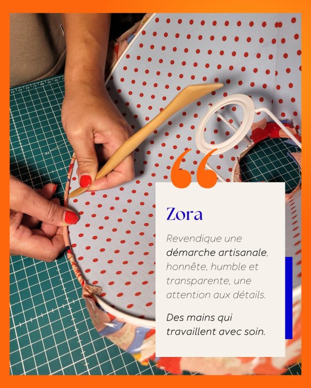 Déterminée à faire de cette passion un métier, elle se forme à l’École des Arts Décoratifs de Versailles afin d’obtenir une certification en création d’abat-jour et couture, puis complète son apprentissage en Angleterre auprès d’une abat-jouriste spécialisée dans les techniques anglaises traditionnelles. En 2025, elle crée Zora Luminaires (un nom choisi en hommage à sa maman, mêlant les premières lettres de leurs prénoms).
